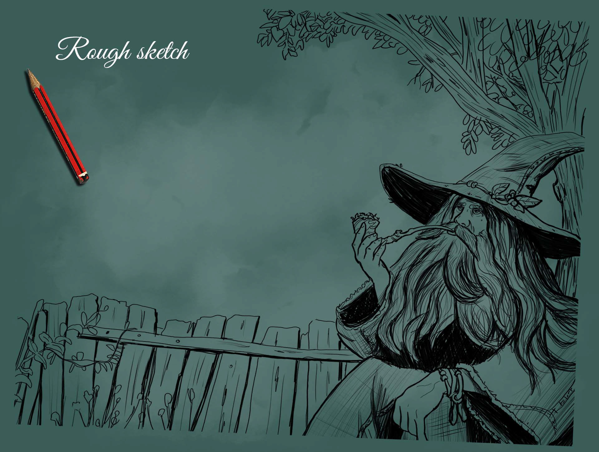 In this project we were contracted to illustrate a book cover of a wizard deep in thought, looking up to the stars and smoking a pipe. We wanted the illustration to look somewhat hand sketched and use earthy colours to bring it all together.