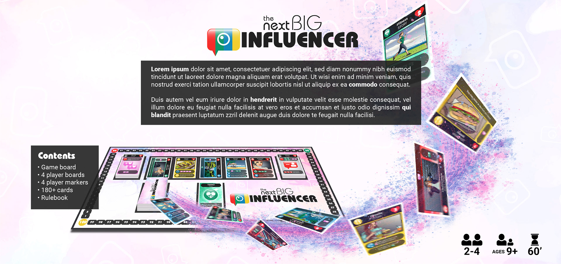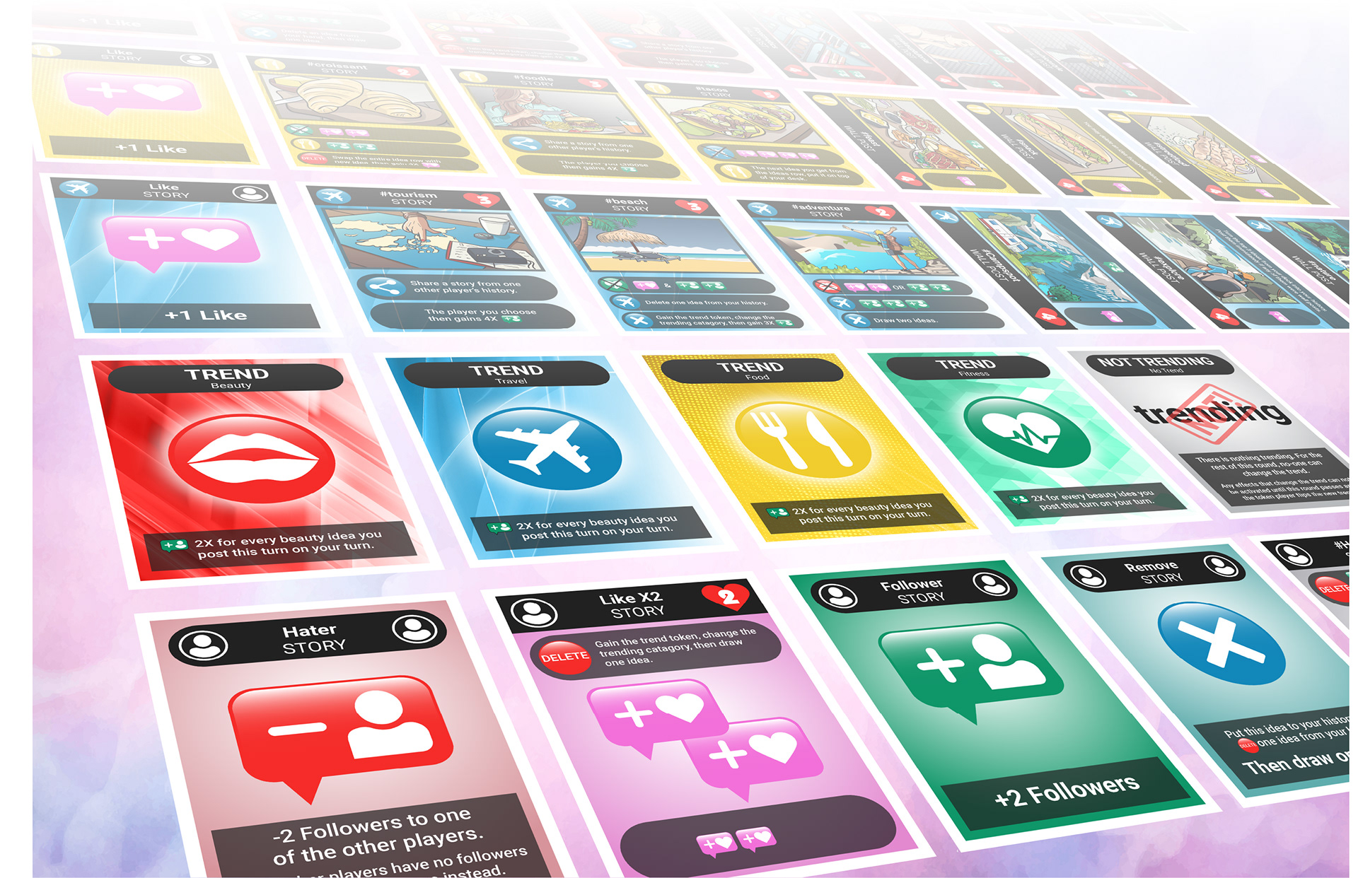 We were contracted to design and illustrate a Board game; creating bright and colourful imagery to submerge the players into a tabletop world of social media.